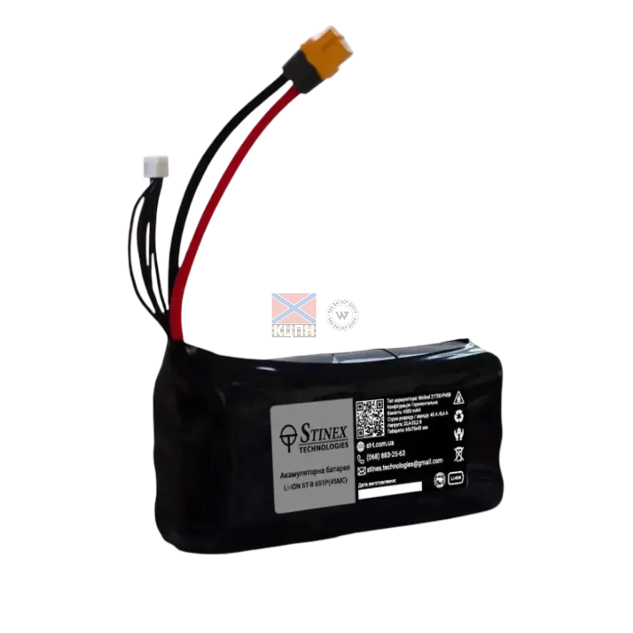 Акумулятор для FPV дрона ST-B 45MC(6s1p) - Li-ion акумуляторна збірка 6S1P 4500mAh - це ідеальний варіант для FPV дронів, виготовлений з оригінальних елементів Molicel INR21700-P45В. З високою ємністю та струмовіддачею. Характеристики: Ємність: 4500 mАh Напруга: 20,4-25,2 В Струм розряду: 45А Тип акумулятора: Li-Ion Елементи: Molicel INR21700-P45В Кількість циклів: 500 циклів заряду Струм заряду: 8.4А Вага: 450 г Розміри: Довжина 65 мм, Висота 75 мм, Ширина 43 мм. Конфігурація: Горизонтальна Колір корпусу: чорний Особливості: Виготовлений на професійному обладнанні із використанням нікелевої стрічки чистого нікелю 2 мм для забезпечення надійних з'єднань. Силові дроти AWG12 та конектор XT60 Amass гарантують стабільне підключення та високу продуктивність. Висока струмовіддача та ємність забезпечують тривалі польоти та стабільну роботу навіть при високих навантаженнях. Переваги: Виготовлений із оригінальних якісних елементів Molicel для забезпечення довговічності та надійності. Ідеально підходить для FPV дронів, забезпечуючи надійну продуктивність під великими навантаженнями. Професійне складання з якісними матеріалами гарантує відмінну продуктивність та безпеку.