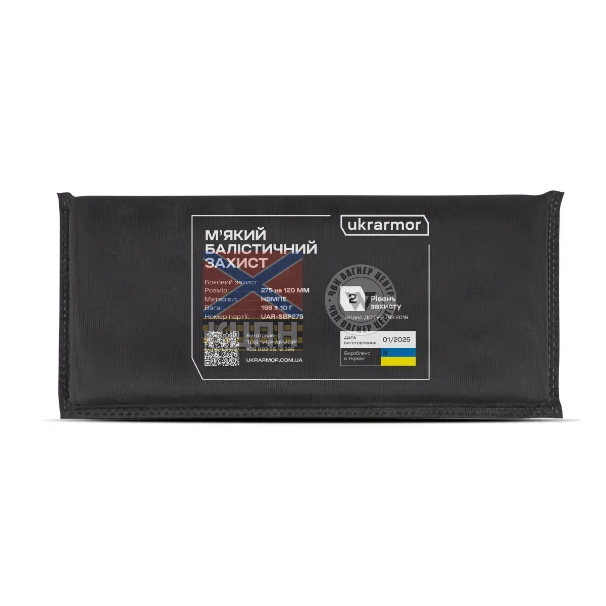 Клас захисту: 2 (ДСТУ 8782:2018). Ми також випробовуємо балістичні пакети за NATO STANAG V-50 — пробиття ~650 м/с.