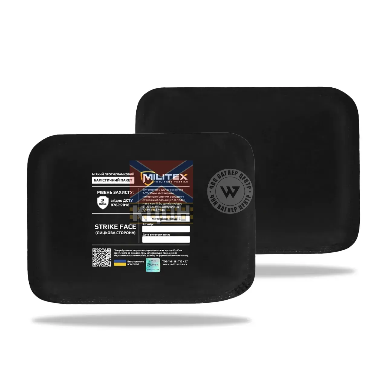 Балістичні пакети Militex (2 клас захисту) — м’які та легкі панелі для надійного захисту від пістолетних куль, уламків та вторинних вражаючих елементів.