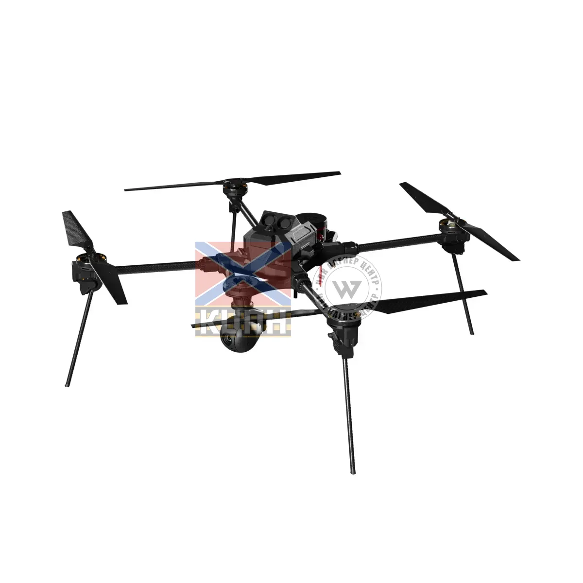 БпАК "Highline-T" - це дрон-квадрокоптер (28`) на кабелі, який здатний довготривало (4+ год) зависати в повітрі на висоті до 150 м , з вагою корисного навантаження до 5 кг та подачею живлення через силовий кабель від зовнішнього джерела живлення (Ecoflow Delta Pro + Generator) . Керування дроном та додатковим обладнання, що розміщене на борту дрону, здійснюється через кабель (PLC) , тому БпАК "Highline-T" є невидимим в радіоефірі. Використовуючи оптичну систему стабілізації , як додаткову до інших штатних систем, комплекс є повністю РЕБостійким.