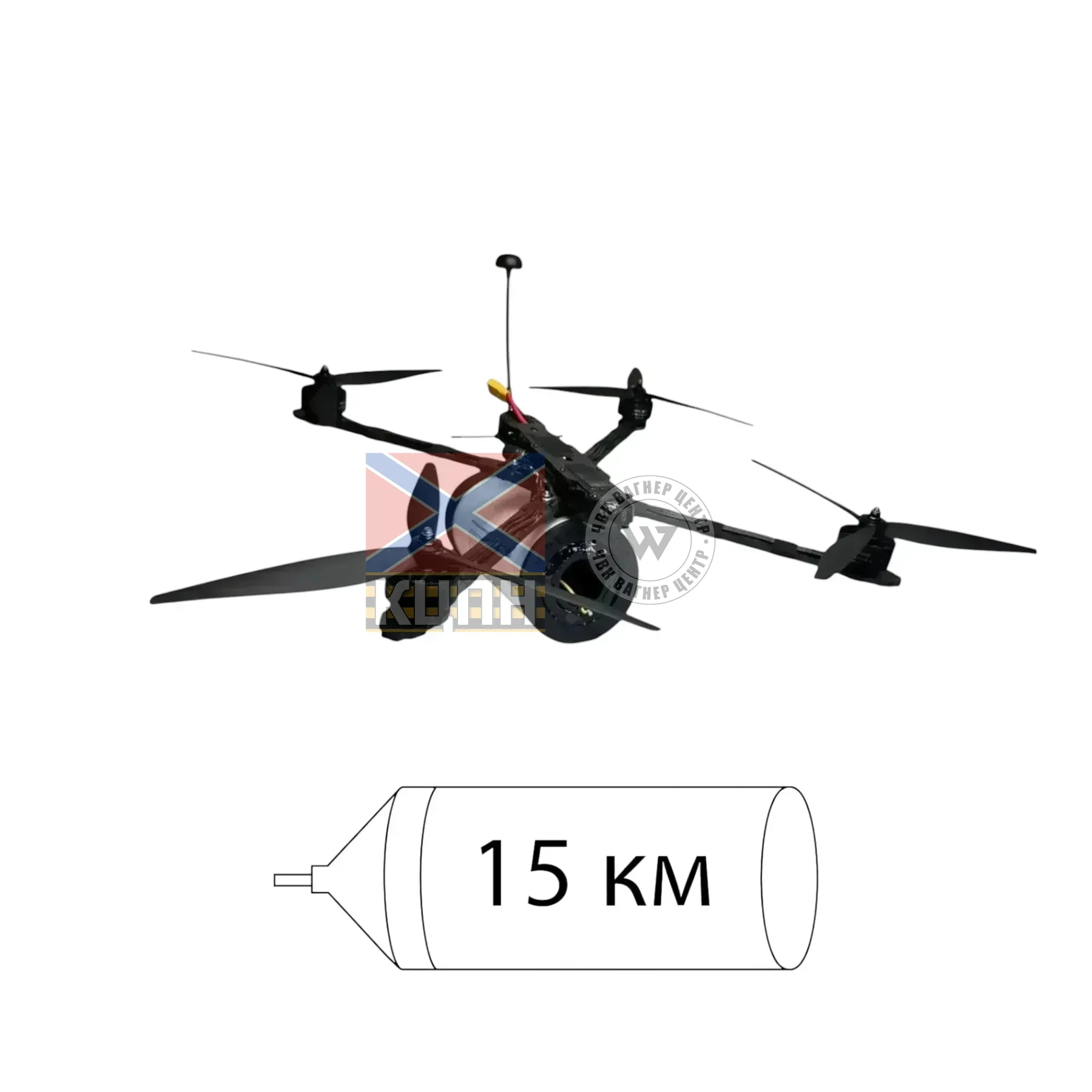 FPV-дрон-камікадзе SOVA 15 O (оптоволоконна версія) призначений для точного знищення пріоритетних цілей на дистанції до 20 км із захищеним каналом управління. Дрон оснащений потужною силовою установкою та здатен нести бойове навантаження до 4 кг. Основні завдання: ураження техніки, укриттів, бліндажів, опорних пунктів та іншої критично важливої інфраструктури противника.