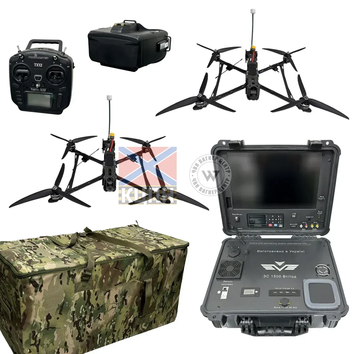 Готовий комплекс "SkyRIPer_K" — це 100 зібраних та налаштованих дронів 9" (70 шт. - з денними камерами, 30 шт. - з тепловізійними камерами) з повними комплектами необхідної електроніки, наземна станція, виносна антена на щоглі та комплект аксесуарів. Все, що необхідно для виконання місій! Час розгортання — до 10 хв