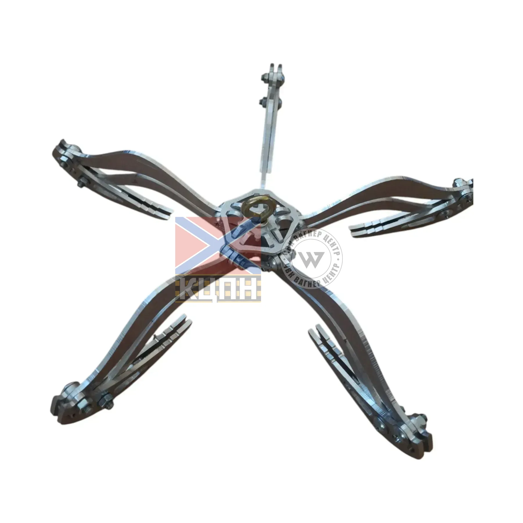 Зачеп евакуаційний алюмінієвий призначений для евакуації посаджених коптерів, або іншого втраченого майна, максимальна вага якого знаходиться в межах 10-14кг. Завдяки п"яти лапам-променям дозволяє чіпляти вантажі складної форми.