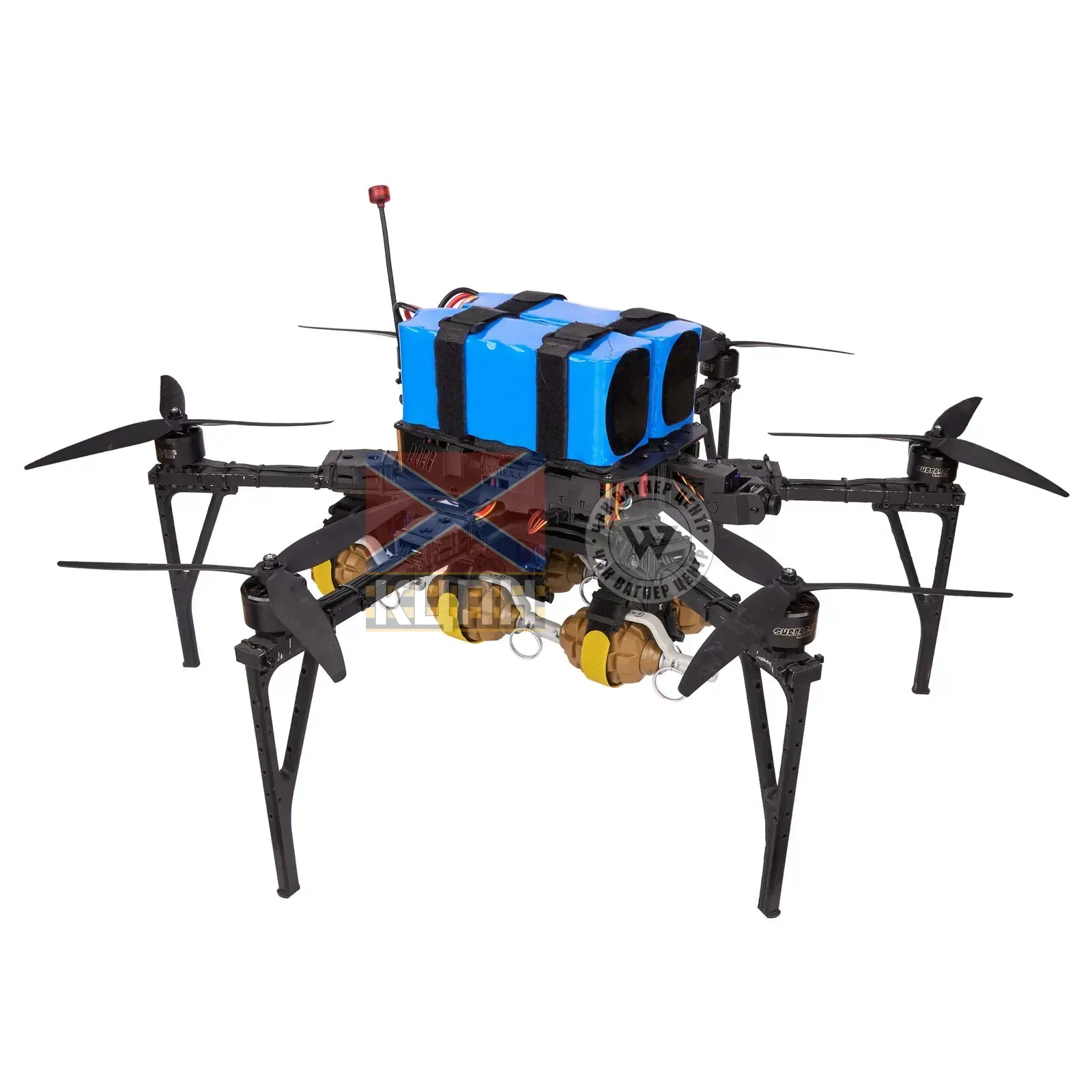 Шестироторний безпілотник-бомбардувальник, оснащений механізмом скиду на