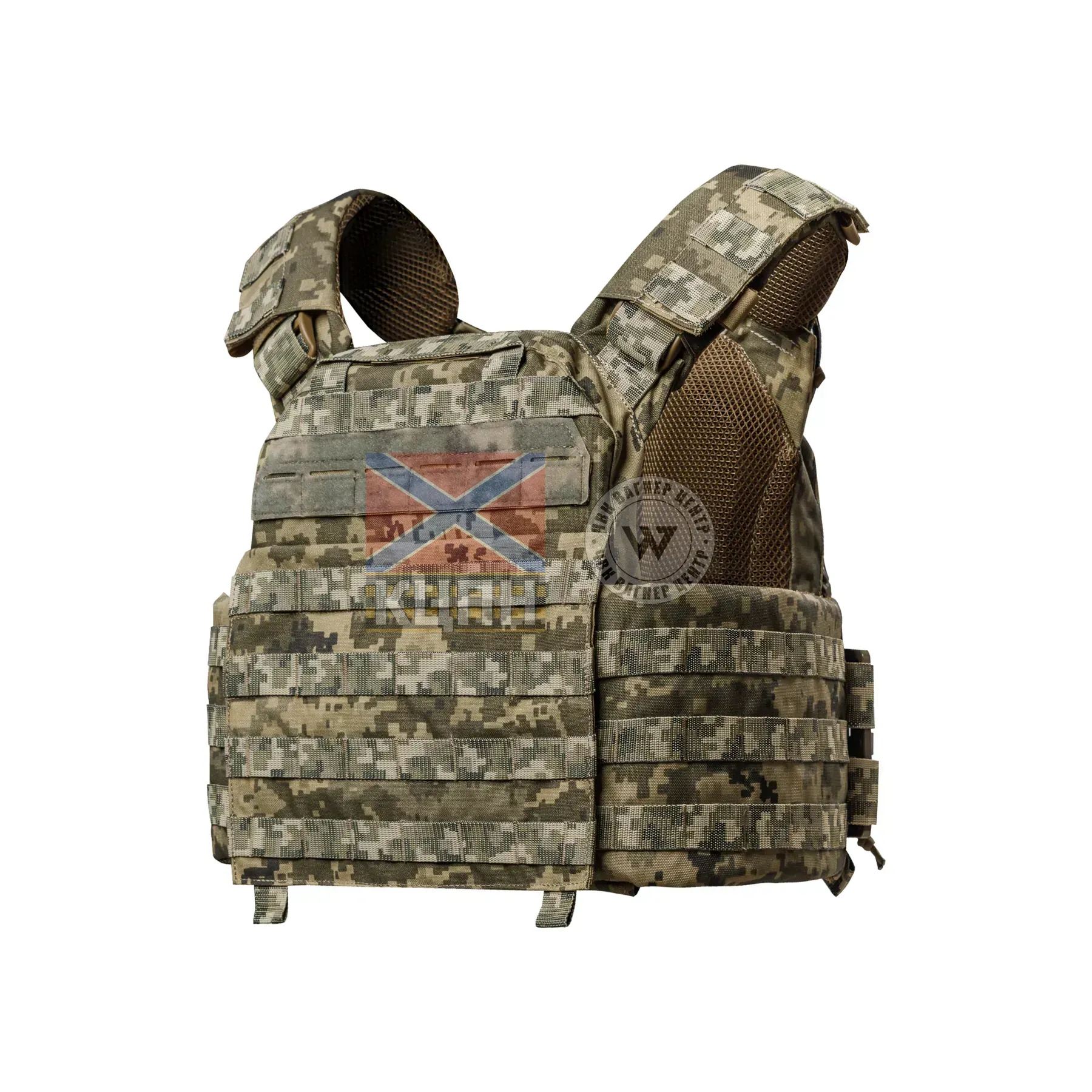 Плитоноска виготовлена з Cordura 1000D, що відома своєю винятковою стійкістю до зносу та водовідштовхувальними властивостями. Вона здатна витримати щонайменше 50 000 циклів тертя без пошкоджень. Вода просто скочується з її поверхні, що робить її надійною навіть у вологих умовах.