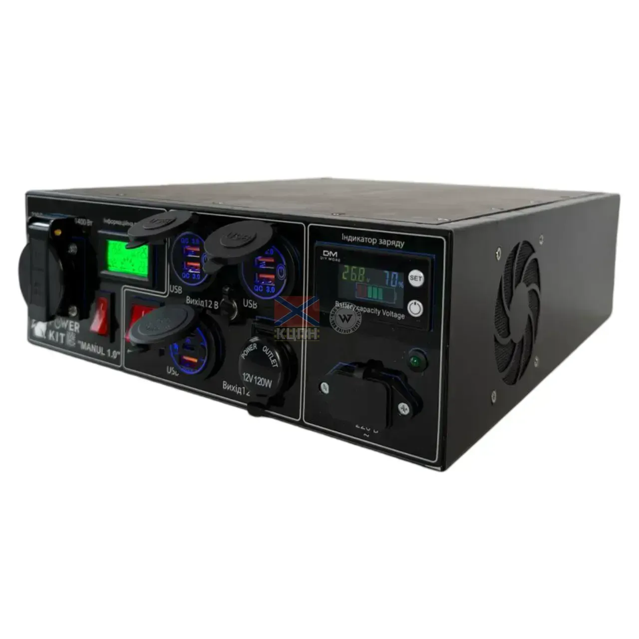 Комплектація : Зарядна станція PowerKit Manul 1.0 - 1 шт Сумка для переміщення та зберігання комплектації - 1 шт Мережевий кабель АС 220 В для зарядки стандарту С13 1,5 м - 1шт Кабель USB подовжувач 1,5 м - 1 шт USB LED лампочка 5 в/1 Вт - 2 шт