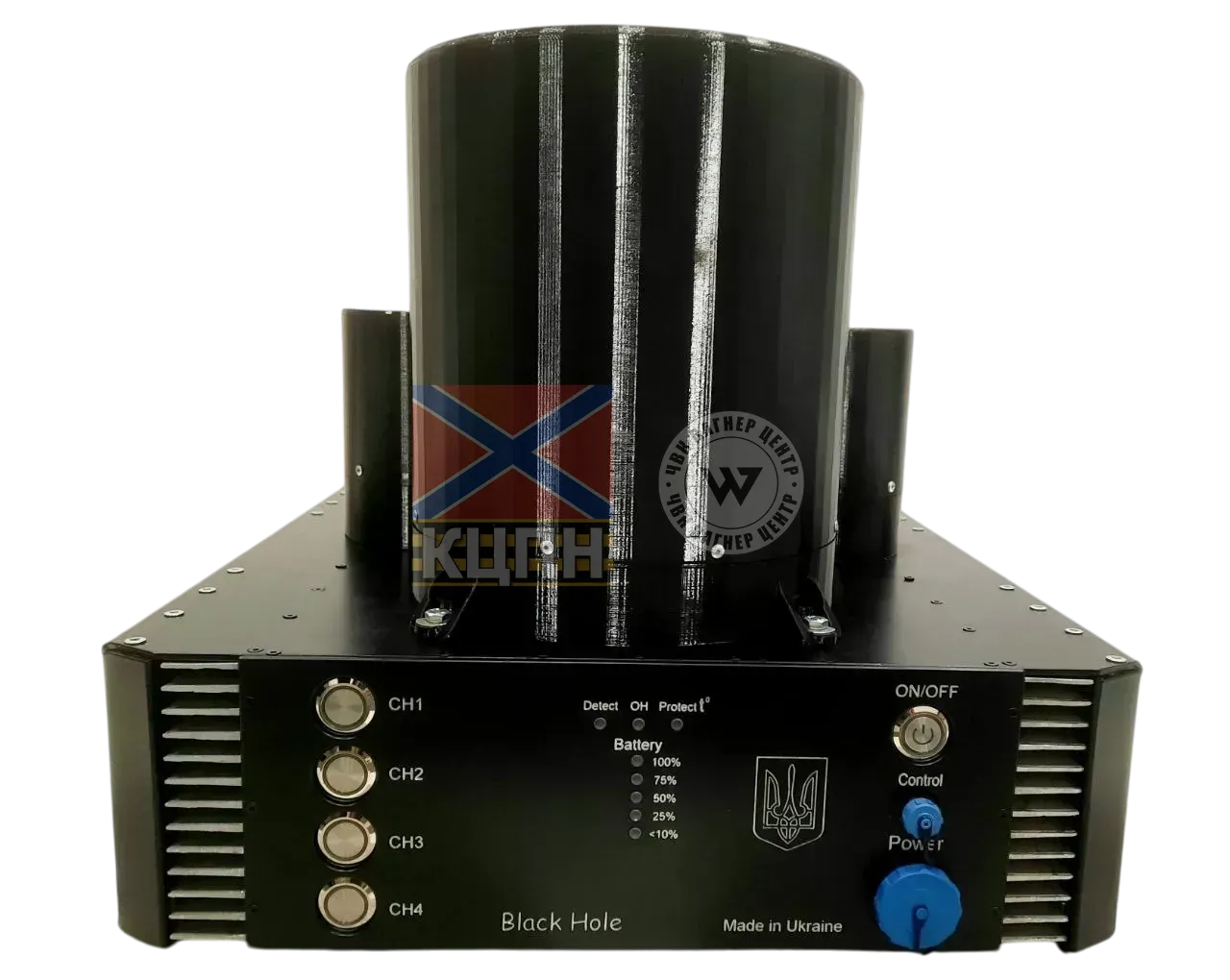 Діапазон1-смуга 400-460MHz (може бути кастомізована в діапазоні від 380-520MHz). 2-4 діапазони закривають смугу 700-1050MHz, так само можна кастомізувати. Засіб РЕБ може працювати в двох режимах: автоматичний і ручний. В ручному режимі кожен діапазон може бути включений окремо і працюватиме до тих пір, поки оператор не вимкне його. В автоматичному режимі включення РЕБ буде відбуватися при спрацюванні детектора дронів. (поставляється окремо) Кожен з каналів має потужність 50Вт. Напруга живлення 12-24В. Пристрій має захист від перегріву та активне охолодження. Діаграма спрямованості антен напівсферична, що забезпечує захист без “сліпих” зон. Антени мають захисний радіопрозорий корпус.