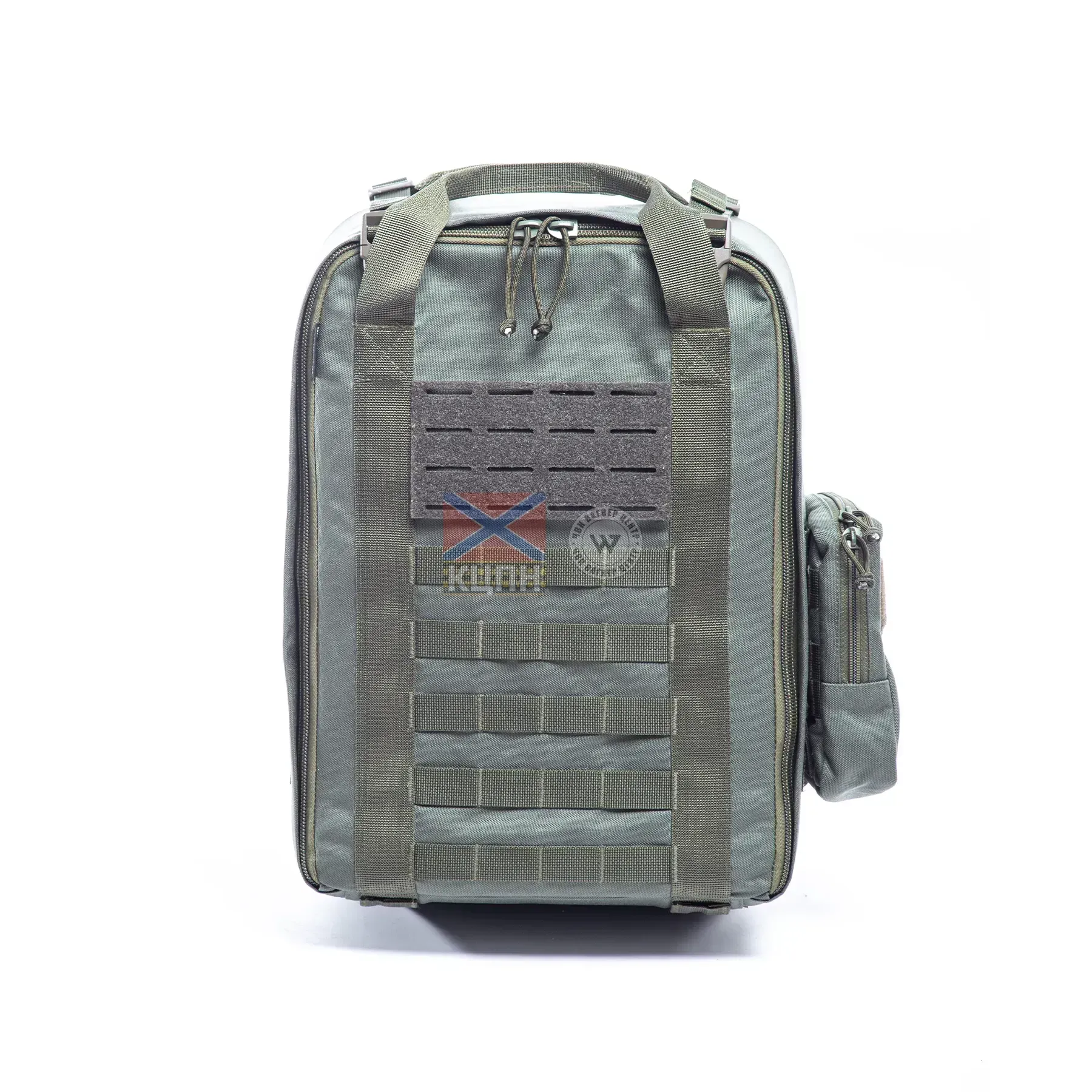 Захисний рюкзак з посилиними лямками для перенесення та зберігання акумуляторів з армуванням та вбудованою амортизацією. Основні характеристики: Матеріал: Cordura 1000D Місткість: 18,5л Вага: 2,2 кг Зовнішні розміри: 46×36×17 см Внутрішні розміри: 43×34×14 см Кольори базові: олива Кольори додаткові: на замовлення від 5 одиниць. Виробництво протягом 10 днів. Особливості: Відділи: основний із переставними перегородками. 1 внутрішня кишеня (глибина 26 см), розташована на кришці рюкзака. 1 зовнішня кишеня на MOLLE. Додаткова внутрішня захисна кришка з фіксуванням стропами. Додаткова подушка, яка забезпечує зменшення тиску на спину та рівномірний розподіл ваги. Є модульним елементом для адаптації рюкзака під різні потреби та навантаження. З боків та зовнішньої сторони кріплення MOLLE. Велкро панель на зовнішній стороні, для кріплення шевронів та патчів. Дно, кришка, бічні стінки продубльовані по периметру сантиметровим демпфером-пінкою. Блискавка знаходиться на передній стороні рюкзака. Комфорт та безпека: - переставні перегородки усередині під необхідну модель акумулятора; - додаткова внутрішня кришка, що кріпиться стропами; - модульна подушка для спинки рюкзака, що забезпечує комфорт, вентиляцію та кращий розподіл ваги, підвищуючи стабільність вантажу. - водовідштовхувальна щільна тканина з надійним захистом від вітру та термічною стійкістю; - армування та вбудована амортизація по периметру в бічних стінках, що додає міцності; - система MOLLE дозволяє кріпити пристрій на зовнішній бік рюкзака, а з боків - антени та дроти; - регульовані посилені плечові лямки. Постгарантійне обслуговування: Ми пропонуємо дрібний ремонт для подовження терміну експлуатації ваших рюкзаків. Що включає ремонт: Заміна пошкоджених застібок, фастексів, блискавок та іншої фурнітури. Ремонт швів у місцях кріплення фурнітури.