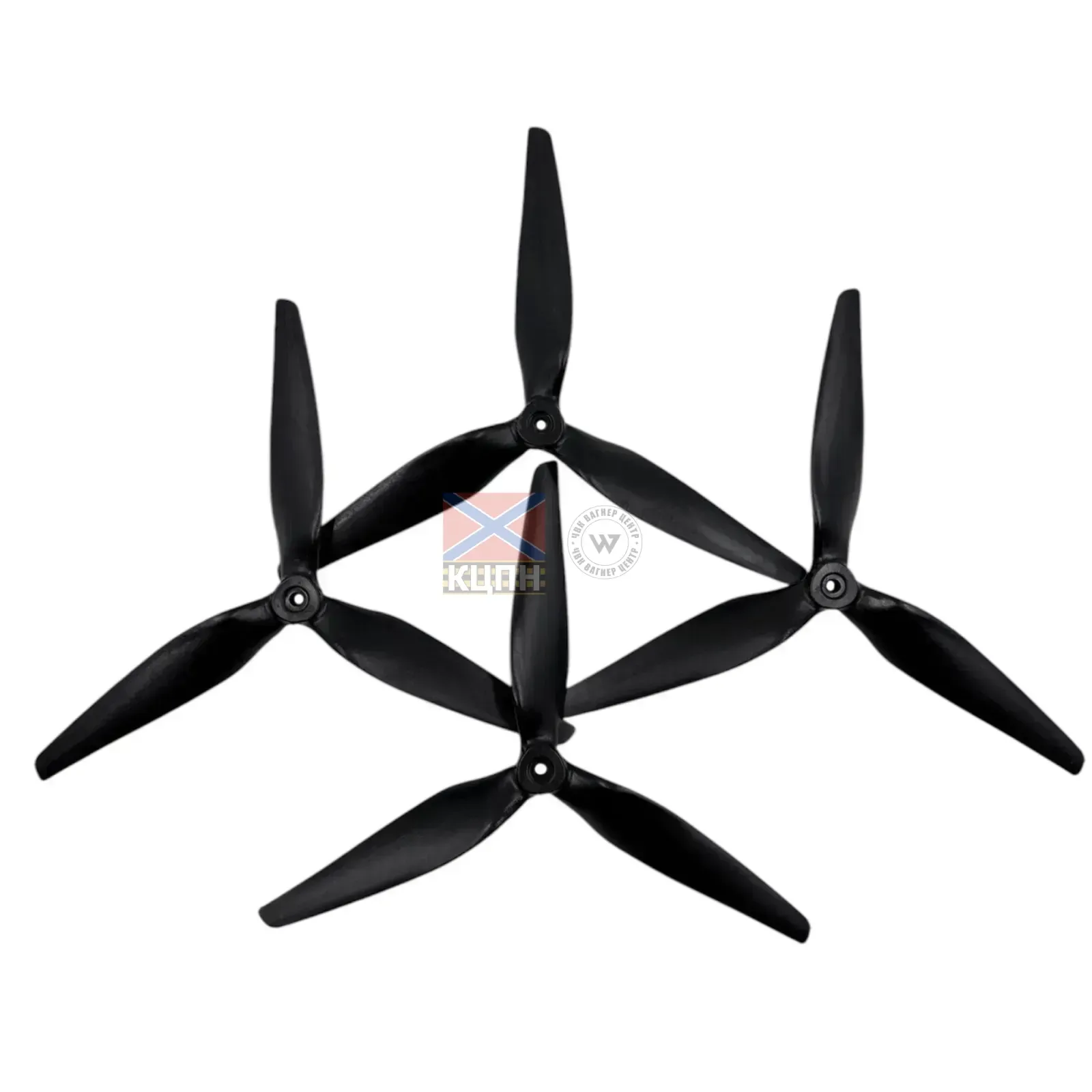 Пропелери RIY 9x5x3 мають три лопаті, діаметр 9 дюймів і крок 5, що забезпечує стабільну аеродинаміку. Вони вироблені в Україні та протестовані в бойових умовах, що підтверджує їхню надійність у професійних польотах.
